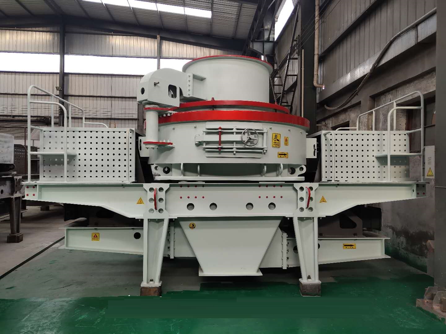制砂機(jī)的主軸上有2個軸承,每一個軸承有一個油嘴。加油時制砂機(jī)須停機(jī)。加油前,要把油嘴清理干凈。在正常的運(yùn)轉(zhuǎn)條件下,按照每工作80個小時加一次油。定期加油可以防止塵土污染軸承。在多塵土的條件下,加油的頻率必須加倍(即每40個小時一次),而潤滑油的數(shù)量減半。切記要避免使用不同種類的混合油脂,例如,在任何條件下,鈣基潤滑脂和鋰基潤滑脂絕不能混合在一起。不要用含鉬的潤滑脂,這是被軸承制造廠禁止使用的。 因此正確的對制砂機(jī)主軸軸承進(jìn)行潤滑加油是非常重要的維護(hù)措施,我們一定要做好。